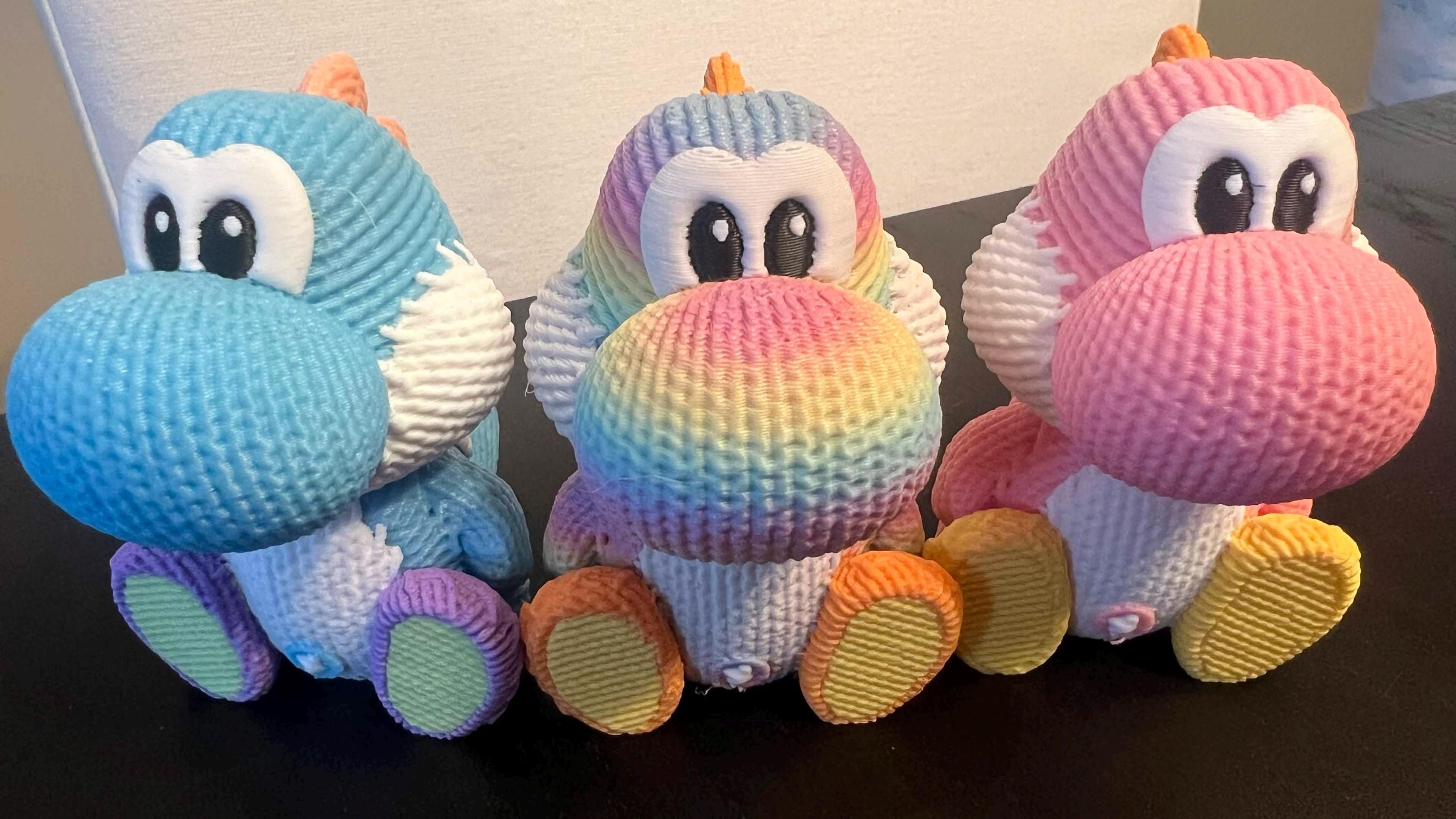 This 3D-printed figure is designed with a knit-style texture that looks hand-stitched but is printed for durability and detail.