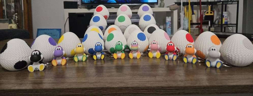 The ultimate cuteness overload! The name Yarmy is so clever. It's an army of yarn yoshis, who would have thought! And these will make a great addition to easter egg hunt. I love how they fit inside the eggs like a little surprise. The craftsmanship is superb as before. Packaging was great, nothing moved around. And best of all is that I can carry this anywhere with me since it has a keychain.